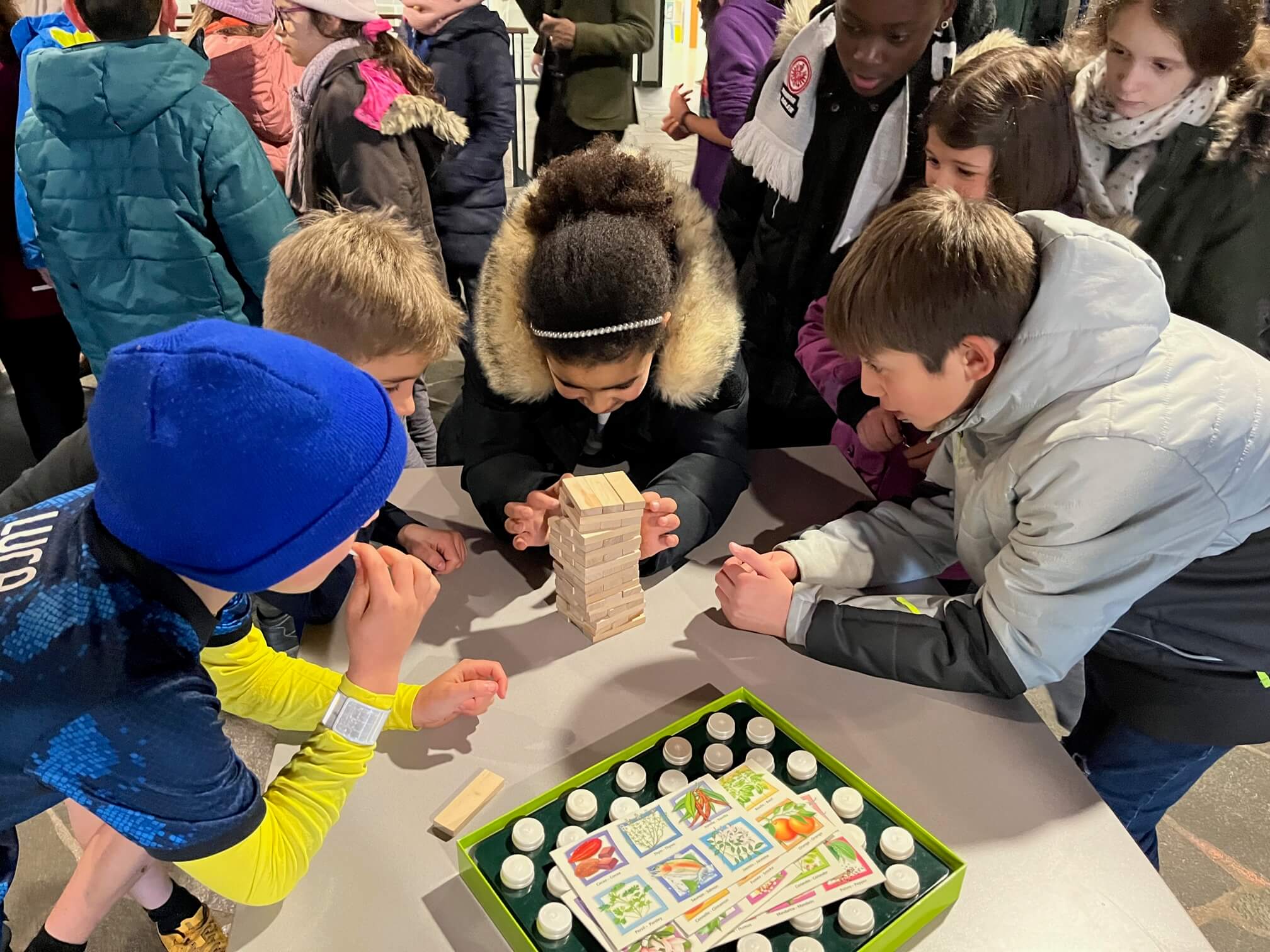 Des élèves jouent au jeu vidéo qu'un groupe de 6e à créer à l'occasion de la Semaine verte du LFVH